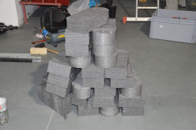 Hauptsächlich aus Holz entstanden, wurden jedoch die Pilaster, Widerlager, Ziersteine und die Rundsteine für die Entlastungskammern im 3D Druck Verfahren aus Kunststoff angefertigt.