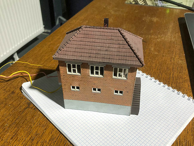 Die Außentreppe ist 3D gedruckt. Alles andere sind Verpackungsreste und eine ausgeschnitte aufgeklebte Zeichnung vom Stellwerk.